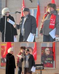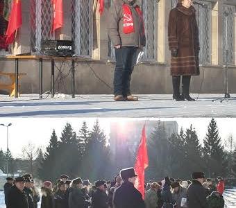 17 января в г. Альметьевске прошёл митинг КПРФ. По приглашению Альметьевского горкома на митинге выступили Елена Гатина – помощник депутата Госдумы РФ и Вячеслав Бондарев – первый секретарь Лениногорского местного отделения. Митинг провёл первый секретарь Альметьевского горкома КПРФ Александр Фёдорович Агафонов.