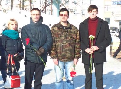 Коммунисты и комсомольцы города Южно-Сахалинска собрались на площади им В.И. Ленина, чтобы почтить память Вождя и возложить к подножию его памятника цветы.