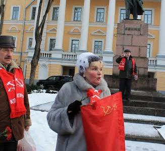 «Основатель первого в мире социалистического государства В.И. Ленин внес неоценимый вклад в мировую историю. «Мир народам, земля крестьянам» были не просто лозунгами, а обладали реальностью. Владимир Ильич обладал даром предвидения и верил, что будет построен мир социализма, - говорил первый секретарь Псковского горкома КПРФ Пётр Алексеенко. – К великому сожалению, в результате переворота на страну опустился капиталистический мрак. Псковская область стала лидером по экономическому развалу, где промышленность находится в минусе, сельское хозяйство в глубоком упадке, из 8 тысяч деревень обезлюдело свыше 6 тысяч. В настоящий момент зреет революционная ситуация, потому что резко поднялись цены на продовольствие, на услуги ЖКХ, на горюче-смазочные материалы, требуют оплачивать тысячи рублей за установку общедомовых счетчиков на воду и подачу тепла. Люди возмущены до предела».