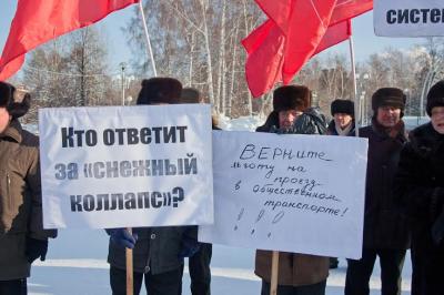 Кроме этого участники акции требовали вернуть льготу на проезд в городском транспорте для пенсионеров, отмененную декабрьским решением Законодательной Думы, и наказать виновных в транспортном коллапсе, имевшем место в Томске в начале недели.