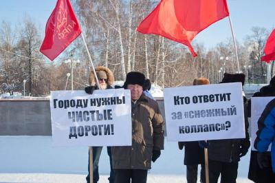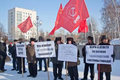 Коммунисты вышли на Новособорную площадь с плакатами «Мэра к ответу за развал транспортной системы города!», «Требуем поддержки муниципального электротранспорта» и другими. Несмотря на сильный мороз, акция собрала около 30 человек.
