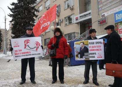 Депутаты Липецкого областного Совета А.И. Сиротин, А.Е. Воробьев и С.В. Токарев вышли на Театральную площадь города с плакатами «Дело Бессонова шито грязными нитками», «Руки прочь от коммуниста Владимира Бессонова!»