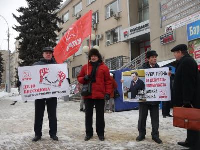 Депутаты Липецкого областного Совета А.И. Сиротин, А.Е. Воробьев и С.В. Токарев вышли на Театральную площадь города с плакатами «Дело Бессонова шито грязными нитками», «Руки прочь от коммуниста Владимира Бессонова!»
