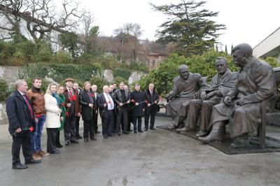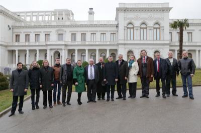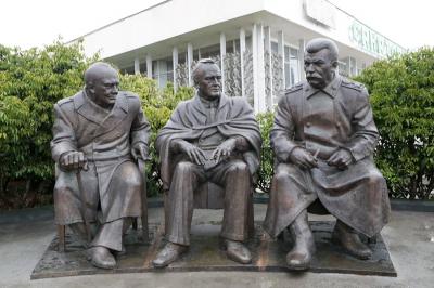 7 февраля участники юбилейных мероприятий посетили исторические места, связанные с проведением в 1945 году Крымской конференции лидеров СССР, США и Великобритании. У входа в Левадийский дворец, где 70 лет назад проходила большая часть переговоров, представители КПРФ возложили цветы к монументу И.В. Сталина, являющемуся частью скульптурной композиции глав «большой тройки». Официальное открытие этого памятника состоялось несколькими днями ранее.