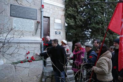 Участники юбилейных мероприятий побывали в Алуште. Они возложили цветы к мемориальной доске, установленной на здании центральной городской библиотеки в память об участниках Крымской конференции в феврале 1945 года. На проведённом здесь митинге выступили представители Центрального комитета КПРФ, депутаты фракции КПРФ в Государственной Думе.