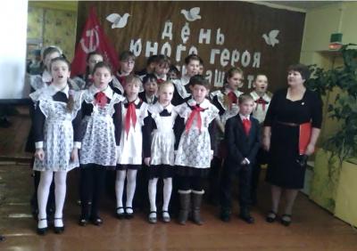 Пионеры школы рассказали о боевых и трудовых подвигах своих сверстников в годы войны, как они, не боясь фашистов, выполняли боевые задания, как собирали на полях колоски и, стоя у станков, ковали победу в тылу. Присутствующие представители КПРФ – первый секретарь краевого комитета КПРФ Юрий Гайдук, первый секретарь Читинского местного отделения КПРФ Нина Днепровская и председатель Совета ветеранов Читинского района Нелли Гаврилова пожелали юным ленинцам быть достойными светлой памяти пионеров-героев и вручили памятные сувениры.