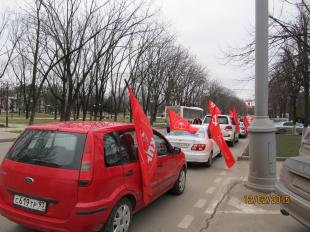 После завершения официальной церемонии возложения цветов и венков к мемориалу "Жертвам фашизма" в Первомайской роще, представители городского отделения КПРФ и ЛКСМ под руководством первого секретаря Краснодарского горкома, депутата краевого парламента тов. С.К. Лузинова, совершили автопробег по г.Краснодару. В течении двух часов "красный автопоезд" из 15 машин перемещался по центральным улицам Краснодара.