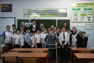 Следующей шахматной точкой стала кадетская школа-интернат в селении Прохладный. К большому сожалению, никто из учащихся школы не умел играть в шахматы. Однако во время занятия очень многие сходу усвоили правила игры и теперь горят желанием совершенствовать полученные знания.