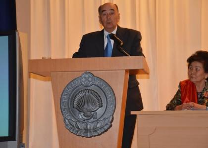 Работа Конференции началась с вноса копии Знамени Победы. С приветственным словом обратился первый секретарь Комитета КРО КПРФ Нуров Н.Э.
