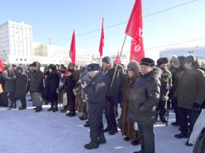 Митинг кратким вступительным словом открыл второй секретарь Якутского рескома КПРФ Вячеслав Куличкин. Он сказал, что сегодня на главной площади столицы Якутии многолюдно, потому что коммунистов и комсомольцев пришли поддержать активисты патриотических общественных организаций «Дети войны», «Русский лад», «Российские ученые социалистической организации», женского Союза «Надежда России» и другие. Затем Вячеслав Семенович, убедительно раскрыв антинародную сущность нынешнего режима, предоставил слово члену ЦК КПРФ, первому секретарю Якутского рескома партии Виктору Губареву.
