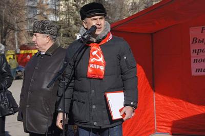 Для этого не надо было далеко ходить. Митинг проходил неподалеку от обветшавших фасадов пустующих зданий расформированного в сердюковские времена ростовского военного института ракетных войск стратегического назначения. «Больно видеть пустые глазницы окон некогда престижного учебного заведения, готовившего первоклассных офицеров-ракетчиков», - говорил ведущий митинга выпускник военного института, секретарь Ростовского обкома КПРФ, руководитель фракции КПРФ в Законодательном собрании Ростовской области Е.И. Бессонов. Только возродив российскую армию, восстановив ее мобилизационный резерв, боеспособность и боеготовность частей и подразделений мы можем обеспечить суверенитет нашей державы, защитить мирный труд людей.