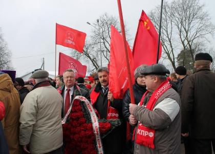 1 марта 2015 года члены делегации Псковского областного отделения КПРФ, преодолев препятствие группы провокаторов, которая сломала несколько древков знамен, в их числе древко Знамени Победы, возложила памятный венок, сделанный из алых цветов в виде звезды. Но буквально через несколько часов он был сброшен с постамента и сломан. Это продолжение глумления над памятью.