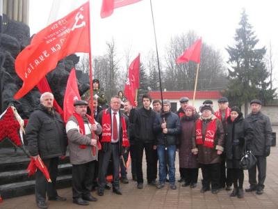 1 марта 2015 года члены делегации Псковского областного отделения КПРФ, преодолев препятствие группы провокаторов, которая сломала несколько древков знамен, в их числе древко Знамени Победы, возложила памятный венок, сделанный из алых цветов в виде звезды. Но буквально через несколько часов он был сброшен с постамента и сломан. Это продолжение глумления над памятью.