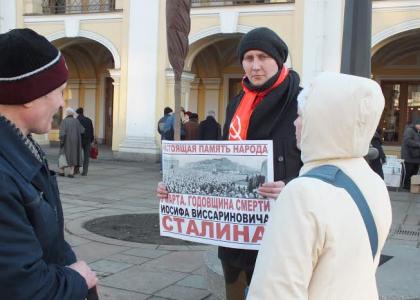 5 марта у станции метро "Гостиный двор" коммунисты, комсомольцы, активисты "Левого фронта" и сочувствующие товарищи провели серию одиночных пикетов памяти товарища Сталина.