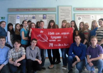 В завершение мероприятия комсомольцы рассказали о Знамени Победы. Ученикам представилась возможность собственными руками изготовить копию Знамени Победы. Каждый из ребят хотел поучаствовать в ее создании, старался помочь.