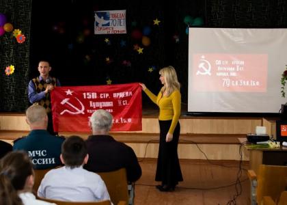 Илья Донченко рассказал ребятам о значимости Победы, о том какой ценой досталась она нашим дедам и прадедам, во время мероприятия детям транслировались тематические видеоролики. Но самое главное, что комсомол познакомил учеников с историей знаменитого стяга – Знамени Победы, которое бойцы Красной Армии водрузили на купол Рейхстага.