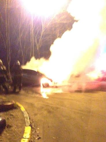 По словам свидетелей двое неизвестных облили машину Фольксваген Поло зажигательной смесью и подожгли. В результате машина кандидата выгорела полностью.
