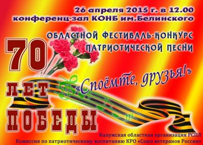 В воскресенье, 26 апреля в Калужской областной научной библиотеке имени В.Г. Белинского Калужская областная организация «Российского союза профессиональных литераторов» (КОО РСПЛ) провела фестиваль-конкурс патриотической песни «Споёмте, друзья!».