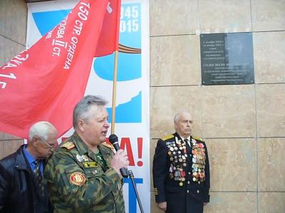 Доска установлена на здании, где ранее располагался гарнизонный дом быта, а сейчас это административное здание.
