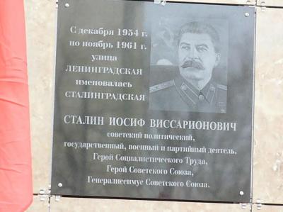 доску с портретом Сталина установили на улице Ленинградская, которая с декабря