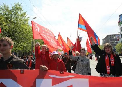1 мая калининградские коммунисты провели традиционные демонстрацию и митинг в честь Дня международной солидарности трудящихся. Несмотря на прогнозы синоптиков, обещавших проливной дождь, день с утра выдался ясным и солнечным. В мероприятии, кроме КПРФ, приняли участие партии «Справедливая Россия» и РОТ-Фронт, Союз советских офицеров, движения «Надежда России», «Дети войны» и «Новороссия», инициативные группы жильцов общежитий Калининграда и экологов из поселка Нивенское. Демонстранты от здания гостиницы «Калининград» под музыку духового оркестра проследовали до памятника «Мать-Россия», где и состоялся митинг.