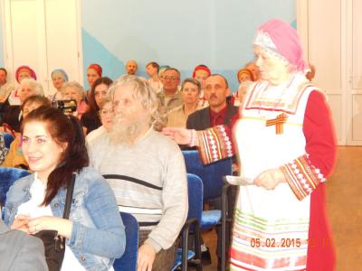 была завершена и ведущие перешли, к творческой. Комсомольцы читали для зрителей
