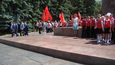 мемориала воинской славы пионеры, комсомольцы и коммунисты прошли к памятнику Владимиру