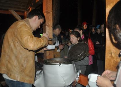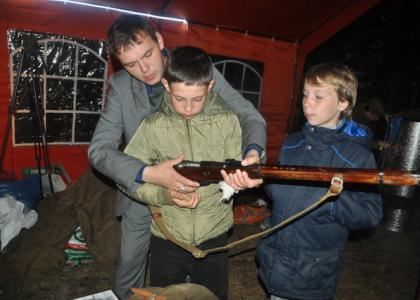 Далее «вахтовиков» ждали солдатская каша и чай из полевой кухни, дружеское общение у костра прямо на берегу Финского залива. Неподалеку от полевой кухни военно-патриотическим клубом «Комсомолец» была организована выставка военного обмундирования РККА, различного инвентаря. Участники могли подержать в руках и даже разобрать массогабаритные макеты знаменитых автоматов ППШ и винтовок Мосина.
