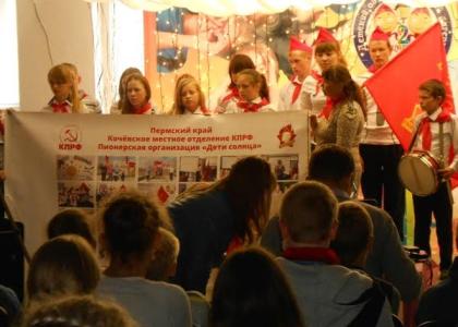 Утро второго дня началось как всегда - с зарядки. А затем прошла торжественная линейка открытия пионерского слёта. Под звуки гона и барабана знамённая группа, чеканя шаг, внесла знамя Пермской пионерии. За ними группа знаменосцев внесла «Знамя Победы», флаги СССР, КПРФ и ЛКСМ РФ. Наступила торжественная минута: ряды прикамской пионерии пополнили новые ребята. Прозвучали слова пионерской клятвы. Красные галстуки юным пионерам повязали старшие товарищи – коммунисты и комсомольцы. Председатель Пермской краевой пионерской организации З.В.Токарева поздравила пионеров и рассказала о главной тематике слёта, о важности возрождения пионерии. Ведь в сильных, молодых руках сегодняшних пионеров окажется очень скоро будущее Родины. Недаром на июньском Пленуме ЦК КПРФ Председатель ЦК КПРФ Г.А.Зюганов говорил о молодёжной политике. Это им, молодым, становящимся патриотами не на словах, а на деле, бороться за достойную жизнь людей в каждом городе, в каждом селе, бороться за возрождение самого человечного и прогрессивного строя на земле – социализма. Для этого и выстраивается партийная вертикаль: пионер – комсомолец – коммунист.
