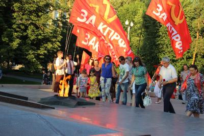 По окончанию акции коммунисты возложили цветы к Вечному огню.