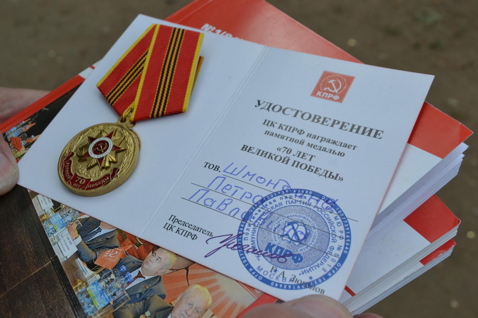 Честь вручить медаль и удостоверение к ней за подписью