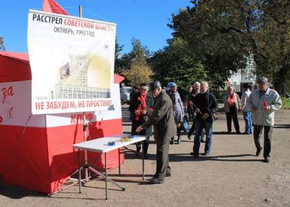 Митинг, организованный Псковским областным отделением КПРФ, посвященный памяти расстрелянных защитников Верховного Совета Российской Федерации 3-4 октября 1993 года собрал сотни псковичей в Летнем саду города Воинской Славы Пскова.