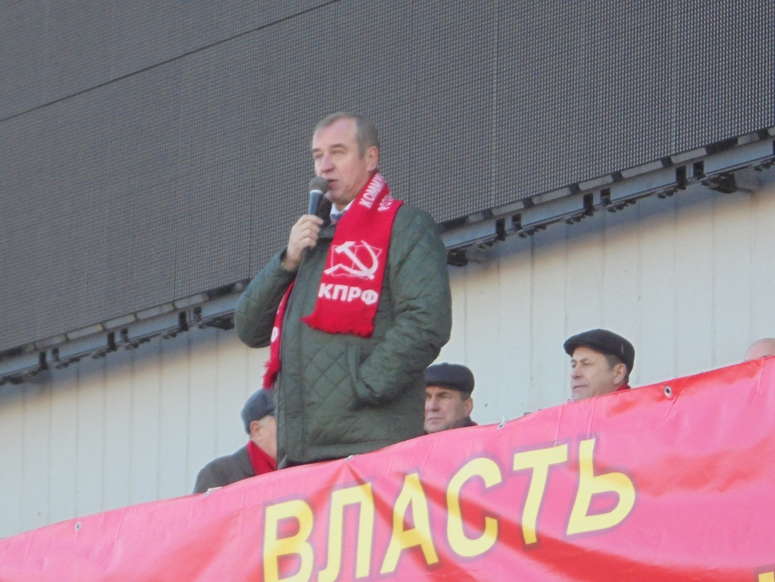 Наконец, слово взял первый секретарь областного отделения КПРФ, губернатор Иркутской области Сергей Левченко. Его встретили аплодисментами и криками "Ура!"