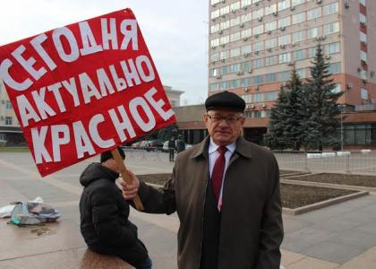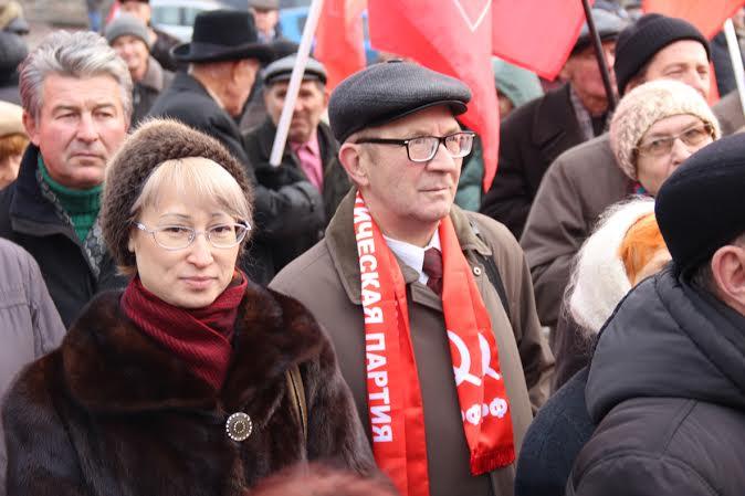 Над участниками митинга развевались красные знамёна. В руках собравшиеся держали, портреты Ленина и Сталина, растяжку «Слава Великому Октябрю!» и плакаты с такими словами «Достойная жизнь — право народа!», «Даёшь власть трудящихся!», «Коррупция разлагает общество!», «Когда 99, 9%? Рейтинг любви к олигархам явно занижен», «Выньте руки из нашего кармана! «Закон о виллах Ротенберга» — государственный бандитизм», «Программу КПРФ в жизнь!», «Голодать в России можно, говорить об этом нельзя. На пенсию в 8 тысяч о еде можно только мечтать», «Обещали победу демократии — получили победу олигархии!» и другие.