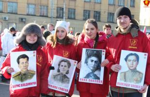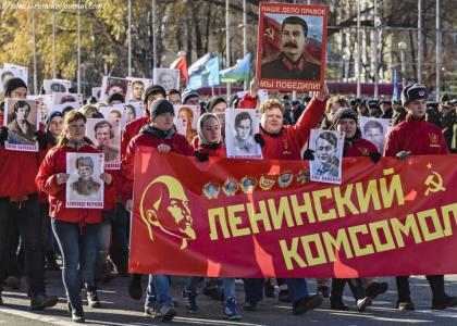 Яркая красная колонна Ленинского комсомола с портретами комсомольцев-героев торжественным маршем прошла по площади, привлекая к себе особое внимание зрителей парада. Во главе красной колонны ребята несли портрет Генералиссимуса Победы - Иосифа Виссарионовича Сталина. Стоит заметить, что местные СМИ постеснялись осветить данный факт в телеэфире.