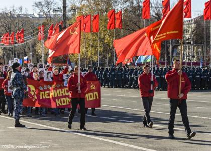 А комсомольцы прямо с этого парада ушли… на митинг, посвященный 98-й годовщине Великой Октябрьской социалистической революции, чтобы выразить свой протест против существующего несправедливого строя.