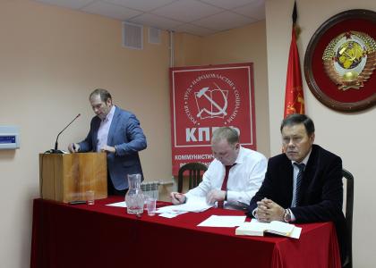 С информацией по второму вопросу «О проведении отчетно-выборной кампании в первичных, местных отделениях и отчета областного отделения КПРФ» выступил секретарь Сталинградского обкома КПРФ Олег Дмитриев.