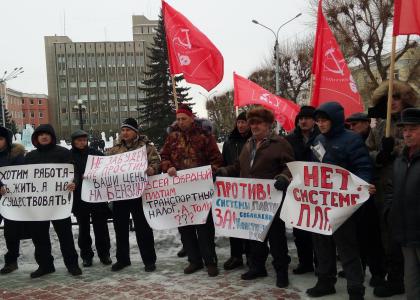 Республика Хакасия. Дальнобойщики вместе с коммунистами Абакана устроили протестный митинг