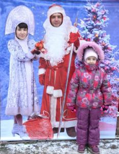 «Дед Мороз и Снегурочка» с прорезями для лиц всех желающих, с помощью которых