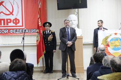 Перед присутствующими выступил Первый секретарь Крымского рескома КПРФ Олег Андреевич Соломахин. После своего выступления О.А. Соломахин вручил грамоту А. Я. Сидорову и партийные билеты. В свою очередь первый секретарь Симферопольского горкома КПРФ В.Н. Шкляренко вручил коммунистам грамоты Симферопольского городского отделения КПРФ.