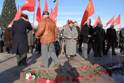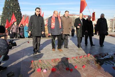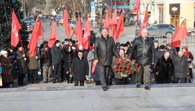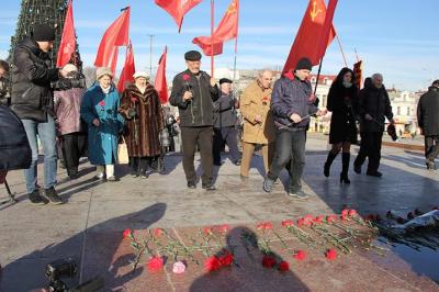 К подножью памятника Владимиру Ильичу были возложены сотни живых цветов как символ того, что жива вера людей в справедливое будущее, как символ того, что Ленин «всегда живой».