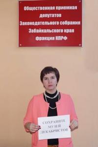 Депутат-коммунист, второй секретарь Читинского городского отделения КПРФ Е.А.Щербакова направила депутатские запросы К.К. Ильковскому, Губернатору Забайкальского края, и В.А. Забелину, Руководителю администрации г. Читы, с требованием услышать мнения читинцев и сохранить музей.