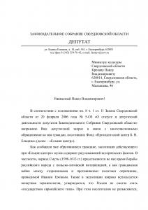министру культуры Свердловской области направлен депутатский запрос с просьбой