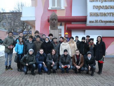 Закончился вечер возложением цветов к бюсту Н.А. Островского и общей фотографией на память. А делегация комсомольцев отправилась к автору книги домой, чтобы поздравить и передать горячий привет от участников презентации.