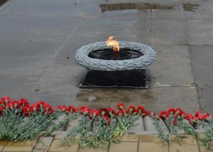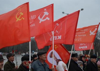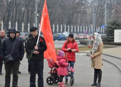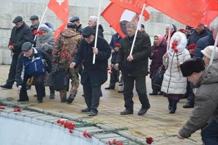 После минуты молчания коммунисты возложили алые гвоздики к "вечному огню".