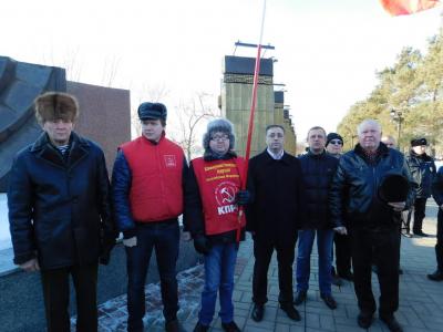В преддверии 98-й годовщины создания Рабоче-Крестьянской Красной Армии, оренбургские коммунисты возложили венки к мемориальному комплексу «Вечный огонь» в центре города.
