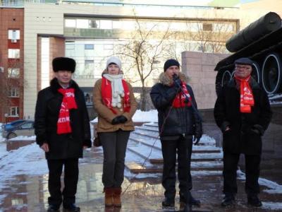 В честь 98-го Дня рождения Советской Армии и Военно-Морского Флота коммунисты, комсомольцы, жители Перми под военные марши и любимые военные песни возложили к постаменту легендарной «тридцатьчетвёрки» венок и алые гвоздики. Пикет предварил небольшой митинг.