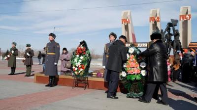 23 февраля коммунисты и комсомольцы Читы по традиции возложили цветы к Вечному огню на Мемориале боевой и трудовой славы забайкальцев в честь Дня Советской Армии и Военно-морского флота.