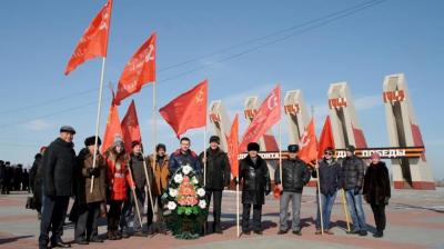 После завершения праздничного митинга все присутствующие могли отдать дань памяти павшим на полях сражений. Десятки читинцев двинулись к Вечному огню. Завершающей группой шли коммунисты и комсомольцы с красными флагами и копиями Знамени Победы в руках. По программе зазвучал Гимн России, совпавший с моментом, когда "красная" колона во главе с первым секретарем крайкома КПРФ Юрием Гайдуком и руководителем фракции КПРФ в Заксобрании края Николаем Мерзликиным подошла к огню. Коммунисты и комсомольцы во время его звучания и во время салюта отстояли у Вечного огня.