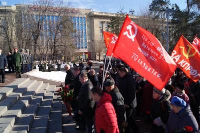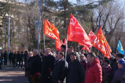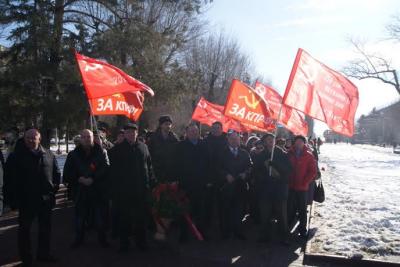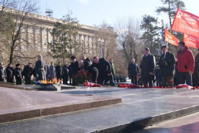 В День Советской Армии и Военно-Морского флота сталинградские коммунисты совместно с представителями ВРО ООД «Дети войны», «Союза Советских офицеров», Комитета защиты ветеранов военной службы и другими общественными организациями и политическими партиями возложили венки и цветы к Вечному огню на Аллее Героев.